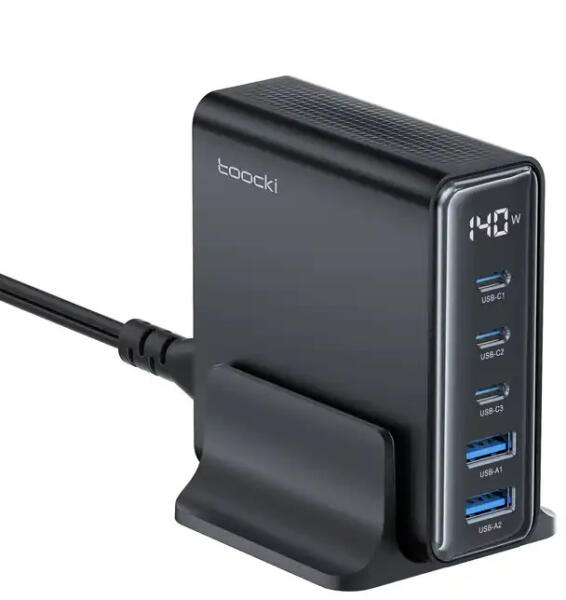Ez az 5 portos Toocki dokkoló állomás nagyon praktikus, egyszerre akár 5 eszköz is tölthető egyidőben az töltő állomással. A 140 W összteljesítménynek és a C porton lévő maximum 100 W-os tápellátásnak köszönhetően a gyorstöltési sebesség hatékonyan kielégíti napi gyorstöltési igényeit. Quick Charge 3.0, Power Delivery 3.0 140W 140 W-os GaN többportos töltő Porto