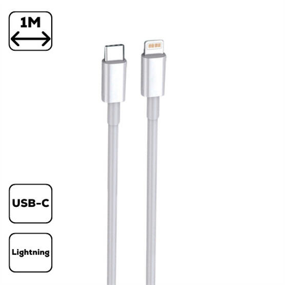 Type-C - Lightning adatés töltőkábel A kábel alkalmas minden lightning kimenettel rendelkező telefon, tablet, egyéb elektronikai eszköz szinkronizálására, vagy töltésére a megfelelő töltőfejhez csatlakoztatva. A töltőfej bemeneti típusa: USB Type-C Kábel hossza:100cm Egyéb jellemzők: 3A gyorstöltés támogatás