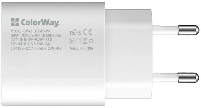 TÖLTŐ A ColorWay Power Delivery Port PPS USB Type-C töltő (25 W) támogatja a legújabb Super Fast Charging PD 3.0 25 W PPS technológiát, az Apple gyorstöltést, a Huawei FCP-t, a Quick Charge 2.0-t és 3.0-t, valamint a Samsung AFC-t 25 W-os