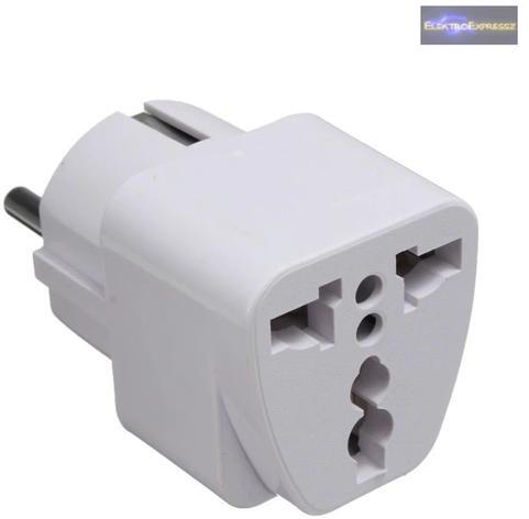Hálózati adapter átalakító UK, AU, USA aljzat-EU hálózati dugaj(fehér) Jellemzök: - CE jelzéssel - Anyag: ABS - Feszültség: 250V - Max. terhelés: 16A - Magasság:35mm - Szélesség :35mm - Hossz:67mm ( dugvillával ) - Szín:Fehér - Átalakító adapter.