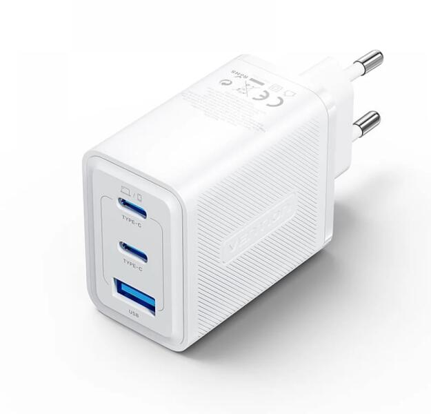 Power charger, Vention, FERW0-EU, 2xUSB-C, USB- A, 65W/65W/30W, GaN (white) Charge up to 3 devices simultaneously and save time. The Vention FERW0-EU charger offers up to 3 ports (2x USB-C, 1x USB-A) and supports multiple fast charging standards. It also uses advanced GaN III technology to combine impressive performance and compact size. So you can always have it at hand! Fast charging The charger