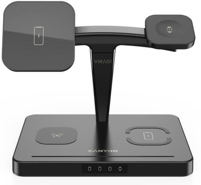Canyon WS-404 4-in-1 15W univerzális vezeték nélküli töltő adapter fekete (Qi) Termékleírás Ez a vezeték nélküli töltőállomás lehetővé teszi, hogy gyorsan és biztonságosan tölthesd az eszközeidet, és megszabadulj a felesleges vezetékektől az asztalodon. Akár 4 eszközt is egyszerre tölthetsz, beleértve a 2 okostelefont, amelyek közül az egyik a mágneses vezeték nél
