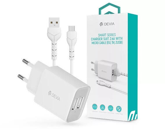 Devia ST364020 5V/2.4A Smart 2xUSB Hálózati töltő adapter + 1 m Micro USB kábel