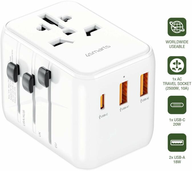 Egyszerre akár négy eszközt is hatékonyan tölthet fel a Satechi 145 W-os USB-C 4 portos GaN utazási töltővel. Az erőteljes GaN technológiának köszönhetően ez a karcsú töltő a legújabb Power Delivery 3.1 protokollt használja intelligens energiaelosztással, hogy az áramellátást a csatlakoztatott portok és eszközök alapján állítsa be. Innovatív, utazásbarát kialakítá