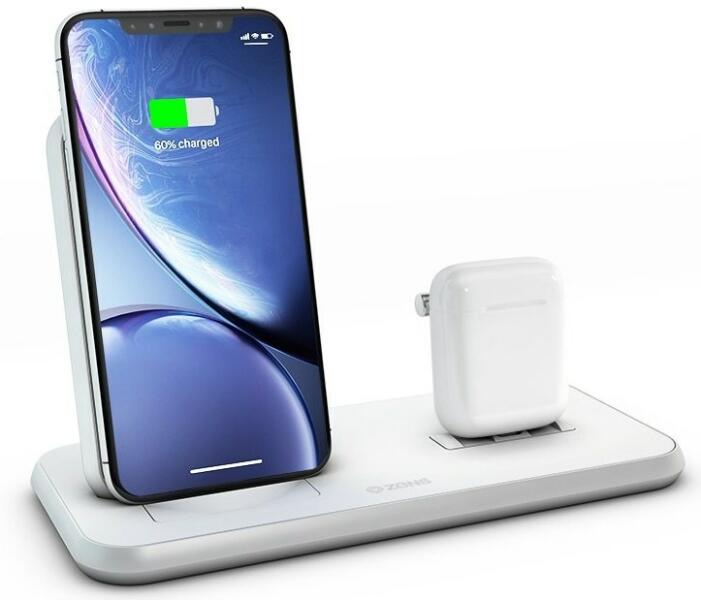 VEZETÉK NÉLKÜLI TÖLTŐ A ZENS állvány + dokkoló alumínium vezeték nélküli alumínium vezeték nélküli töltő iPhone és AirPods (vagy egy második iPhone) egyidejű töltésére szolgál. A töltő teljes teljesítménye 20 W, és