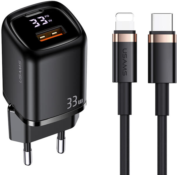 Az USAMS T46 SJ484 egy intelligens töltő USB Quick Charge QC 3.0 és USB-C PD3.0 gyorstöltő portokkal, amely lehetővé teszi két eszköz egyidejű gyors töltését. Digitális kijelzővel ellátott, amely mutatja az aktuális kimeneti teljesítményt. A beépített intelligens kezelőrendszer beállítja a megfelelő feszültséget az adott berendezéshez. Power Delivery gyorstöltési funk