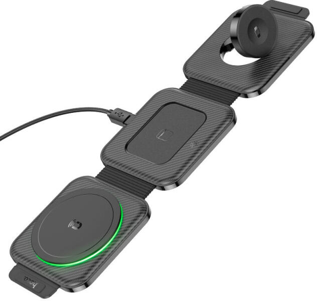 hoco. CQ4 Unique vezeték nélküli összecsukható 3-in-1 töltő, 15W, fekete (CQ4) Töltsd eszközeidet stílusosan és hatékonyan a hoco. CQ4 Unique 3-in-1 töltővel. Ez a modern és innovatív töltőállomás nem csak tölt, de a kialakításának köszönhetően mágneses telefon tartóként is funkcionál, így tökéletes társ az irodában vagy otthon. Az összecsukható design megkön