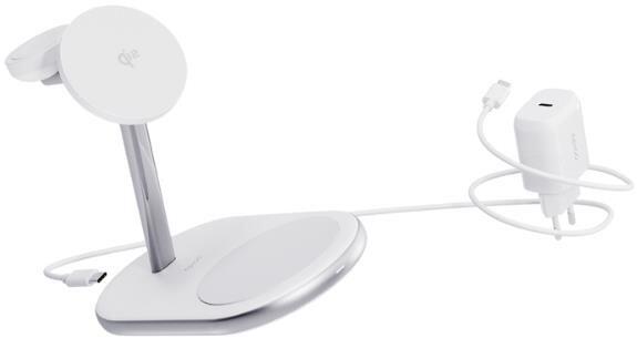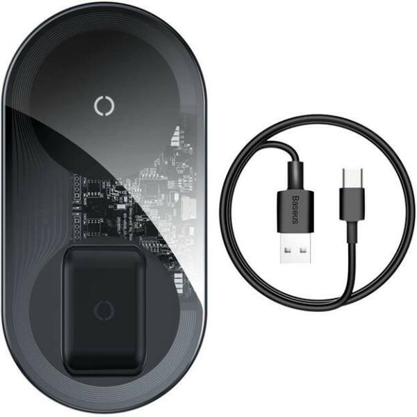 15 W-os vezeték nélküli töltő két hordozható eszközhöz: okostelefonhoz és AirPod-okhoz. Kompatibilis az összes Qi kompatibilis okostelefonnal. Sokoldalú: Két töltőport. Két független induktivitás gyorsan és pontosan működik, anélkül, hogy megzavarnák egymás jeleit. A 15 W-nak megfelelő nagy teljesítmény (az okostelefontól függően) hatékony akkumulátor-töltést tes
