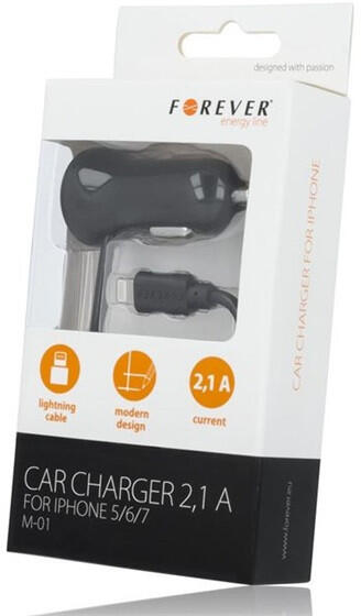 Forever iPhone 8-PIN 2,1A autós töltő Termékleírás Szín: fekete Kábel hossza: 1,20 m Csatlakozó: Lightning (8-pin) Áram: 2,10 A Márka: Forever Bemeneti feszültség: 12 - 24 V Kimeneti feszültség: 5 V A 8 tűs csatlakozóval szerelt iPhone telefonokkal kompatibilis.