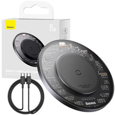 Baseus Simple 2, Wireless Qi induktív töltő, 15W USB-C - USB-C kábellel (fekete)A Baseus Simple 2 lehetővé teszi, hogy gyorsan és kényelmesen, felesleges kábelek nélkül töltse fel készülékeit. A töltő 15W maximális teljesítményt használ és vezeték nélküli. Átgondolt kialakításának köszönhetően biztonságos használatot biztosít, és Android és iOS rendszerekkel m