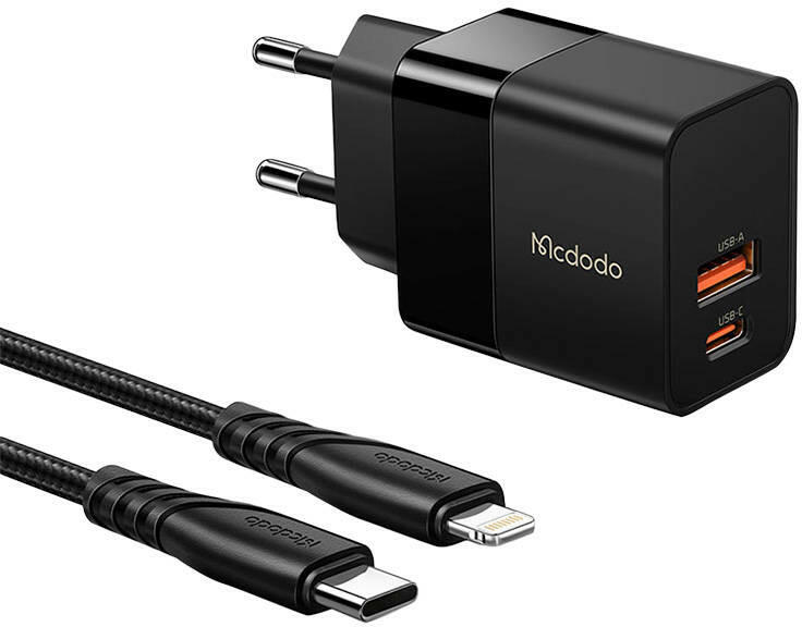 Az Mcdodo CH-1952 USB + USB-C, 20W-os töltősegéd és USB-C – Lightning kábel (fekete) szöveg alapján az alábbi magyar nyelvű termékleírást készítettem: Mcdodo CH-1952 USB + USB-C, 20W-os töltő + USB-C - Lightning kábel (fekete) A Mcdodo CH-1952 töltő segítségével pillanatok alatt töltheted telefonodat, laptopodat vagy táblagépedet! Az CH-1952 4-szer gyorsabb, mint az átl