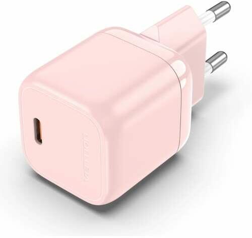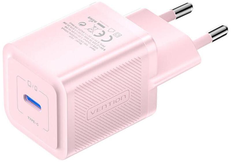 Power charger, Vention, FEPP0-EU, USB-C, 20W, GaN (pink). Get fast charging for your devices. The Vention charger offers up to 20W of power and supports standards such as PD, QC and PPS, for example. It also stands out for its compact design and wide compatibility. It also uses GaN III technology, which ensures its efficient and safe operation. Fast charging The charger is equipped with a USB-C po