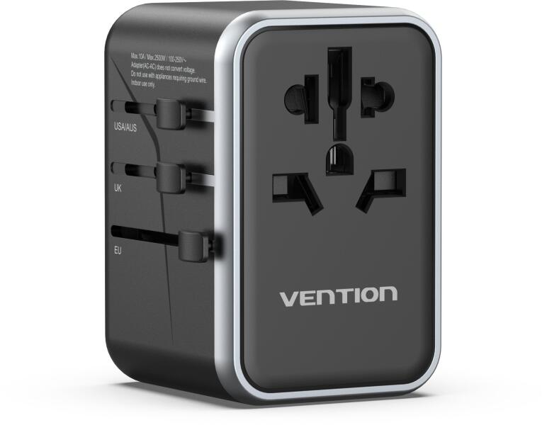 Vention FJFB0 GaN 2xUSB-C 2xUSB-A Universal Travel Adapter 65W (black). The Vention FJFB0 travel adapter is the perfect combination of lightweight, performance and security. With its wide compatibility, advanced safety features and GaN technology, it is an indispensable tool for anyone who values convenience and reliability in daily use. Choose Vention FJFB0 and enjoy fast and safe charging of you