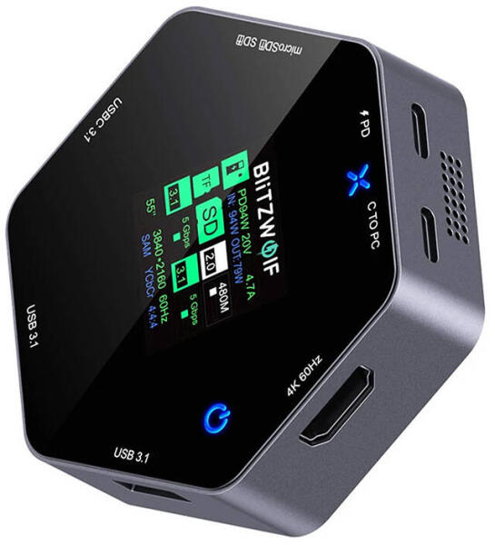 A Blitzwolf BW-TH16 dokkolóállomás egy fejlett, multifunkcionális eszköz igényes felhasználók számára. Széleskörű funkciókat, gyors töltést, kiváló minőségű adatátvitelt és hatékony hűtést kínál. Sokoldalúsága és intuitív kezelhetősége miatt ideális választás azok számára, akik értékelik a kényelmet és a professzionalizmust. 8 különböző interfésszel