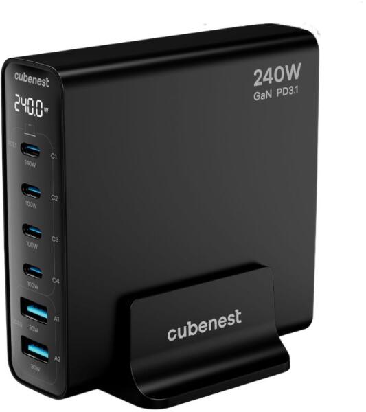 A Cubenest S6D0 tökéletes megoldás akár 6 eszköz egyidejű töltésére! 4 USB-C porttal, 2 USB-A porttal és hatalmas, akár 240 W-os kimeneti teljesítménnyel rendelkezik. GaN technológiával működik, amely biztonságos és gyors módja az eszközök feltöltésének.