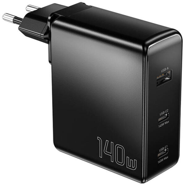 Essager ECT2CA-MQB01-Z 2xUSB-C, USB-A 140 Watt Power Charger (black). The Essager ECT2CA-MQB01-Z network charger provides fast and efficient charging with up to 140 watts of power. With two USB-C ports and one USB-A port, you can charge three devices simultaneously, including laptops, tablets and smartphones. It's lightweight and compact, making it the perfect companion both at home and on the go.