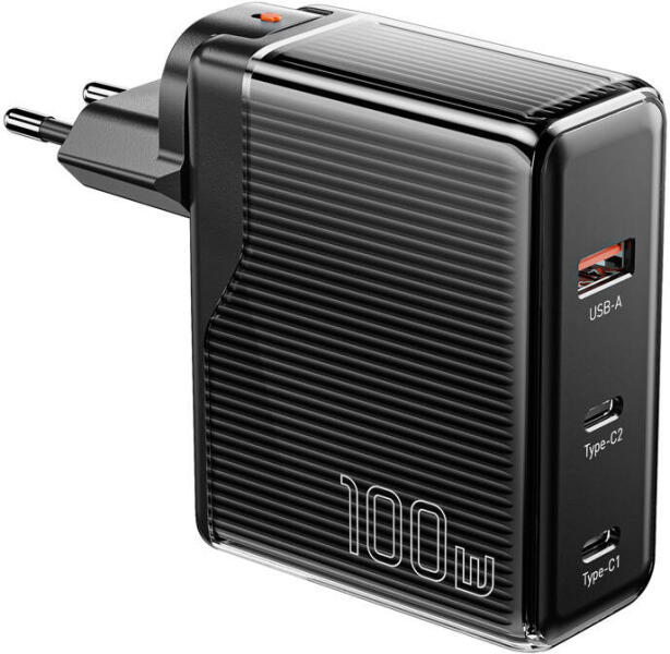 Essager ECT2CA-ZXB01-Z GaN USB-A, 2xUSB-C 100W Power Charger (black). The Essager ECT2CA-ZXB01-Z offers 100 watts of power to quickly charge laptops, smartphones and other electronic devices. What's more, the USB-A and 2xUSB-C interface allows three devices to be connected simultaneously. Meanwhile, thanks to GaN technology, the device guarantees efficient and stable performance. Efficient, fast c