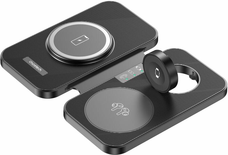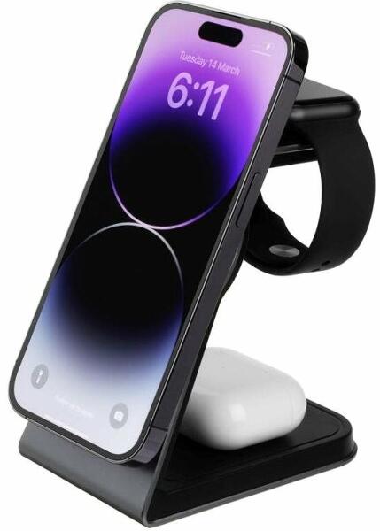ESR HaloLock 3-in-1 Wireless Charger for Watch 2C5660804 (black). The ESR HaloLock 2C5660804 wireless charger is the perfect solution for iPhone, Apple Watch and AirPods users who are looking for a single device to quickly charge all their devices. With Qi2 technology and 15 watts of power, it guarantees instant power to your iPhone, and with Apple's certification for the second generation of Appl