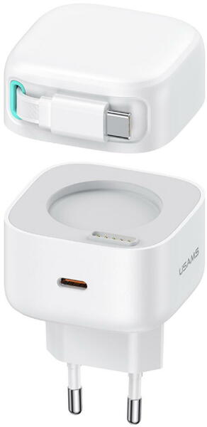 USAMS CD159 W1 Wireless Charger Qi, MagSafe kompatibilis vezeték nélküli töltő, 15W, fehér Az USAMS US-CD159 15W extra vékony mágneses gyors vezeték nélküli töltő egy egyszerű kialakítású termék. Gyorstöltési technológiával és intelligens kezelőrendszerrel felszerelt, amely megvédi a készüléket a túlfeszültségtől, a túltöltéstől vagy a túlmelegedéstől. A töl
