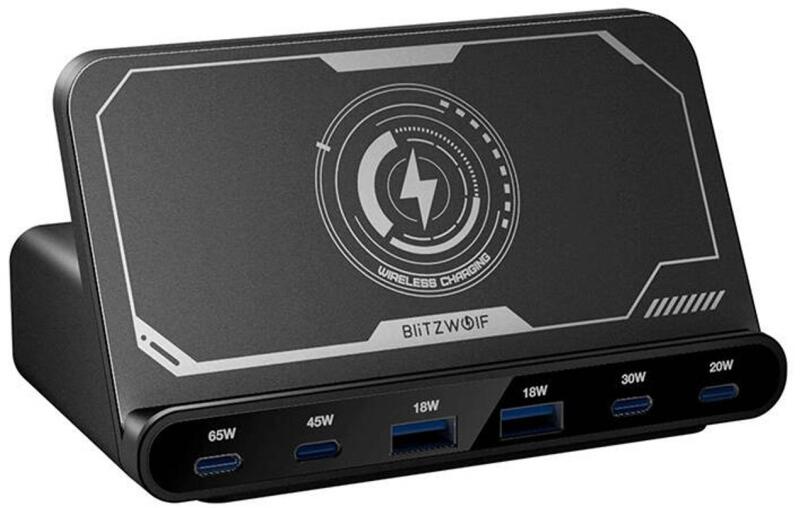 Blitzwolf BW-S27 asztali töltő, 2xUSB-A, 4xUSB-C (fekete)A BlitzWolf BW-S27 hálózati töltő egy nagy teljesítményű töltőeszköz, amely könnyedén megfelel a legigényesebb felhasználók igényeinek is. Hat porttal (4x USB-C és 2x USB-A) és vezeték nélküli töltővel felszerelve - lehetővé teszi több eszköz egyidejű töltését. Emellett 160 wattos maximális kimeneti teljesí