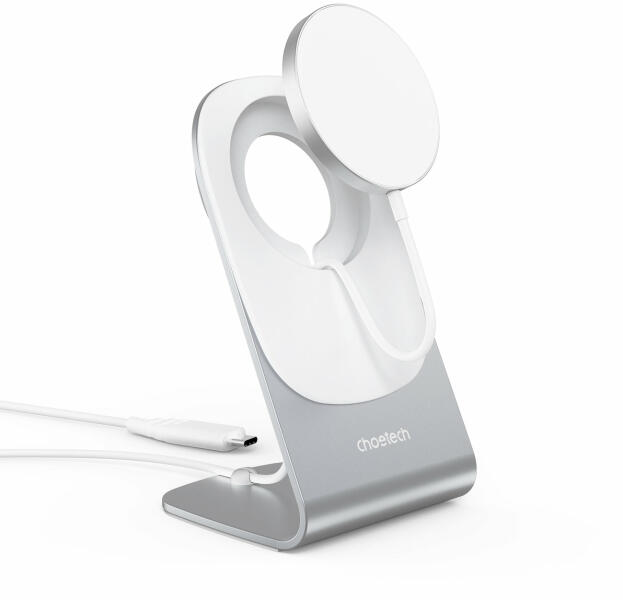 Choetech mágneses Qi vezeték nélküli töltő 15W (MagSafe kompatibilis) Fehér (H046+T518-F) + állványtartó ezüst Egy jó töltőt keresel, amely könnyen és gyorsan tölti a telefonodat vezeték nélkül? A Choetech márka egy beépített mágnessel ellátott vezeték nélküli töltőt mutat be. Teljesen kompatibilis a MagSafe szabvánnyal, ezért biztosítja a gyors és stabil töltés