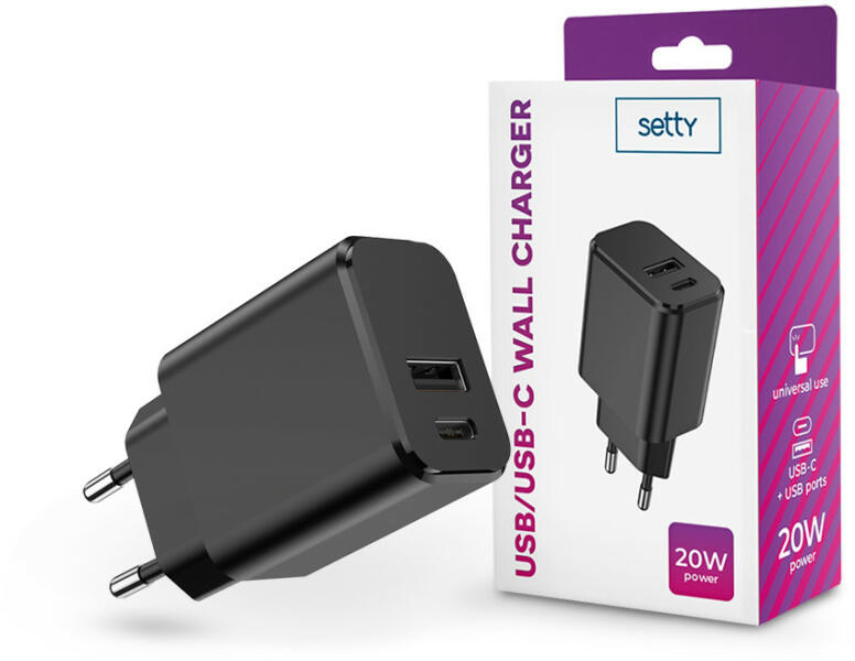 - Maximum 3A áramú Setty USB hálózati töltő lehetővé teszi, hogy gyorsan feltöltse mobiltelefonja vagy más mobilkészüléke akkumulátorát. - Két kimeneti aljzattal rendelkezik - USB-A és USB-C, így egyszerre két eszközt tölthetsz. - A töltő egyszerű kialakítású és kis méretű, így mindig könnyen magával viheti. - USB kimeneti portok száma: 2 - PD 3.0 gyorstöltés -