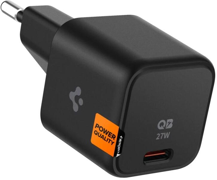 Kompakt Spigen PE2103 hálózati töltő egy USB-C porttal felszerelve, PD szabvánnyal, 27W teljesítménnyel és PPS 25W teljesítménnyel. A tartozék lehetővé teszi az energia azonnali megújítását mind okostelefonokon, mind nagyobb eszközökön, például táblagépeken vagy konzolokon. Ezenkívül a töltő beépített Quantum Boost chippel rendelkezik, amely beállítja az optimális