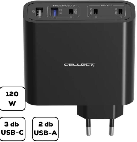 Cellect 2xUSB-A - 3xUSB-C hálózati töltő adapter gyorstöltő funkcióval 120W fekete (MTCB-PD120W-BK) . highlight font-weight: bold; color: black; . product-title font-size: 24px; font-weight: bold; . product-section margin-top: 20px; . product-section h2 font-size: 20px; font-weight: bold; Termékleírás A Cellect 2xUSB-A - 3xUSB-C... Cellect 2xUSB-A - 3xUSB-C hálózati töltő adapter gyo