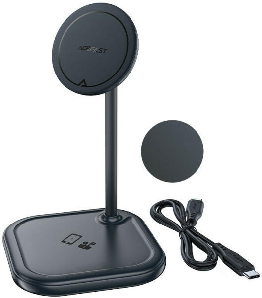 Acefast Qi vezeték nélküli töltő 15W teljesítményig iPhone-hoz (MagSafe-vel) és Apple AirPods fejhallgatóhoz - állvány, állvány, mágneses tartó - szürke (E6 szürke) Stílusos állomás két eszköz - okostelefonok és fejhallgatók - egyidejű vezeték nélküli töltéséhez. Kompatibilis a MagSafe technológiát támogató telefonokkal , beleértve az iPhone 12 sorozatot és a f