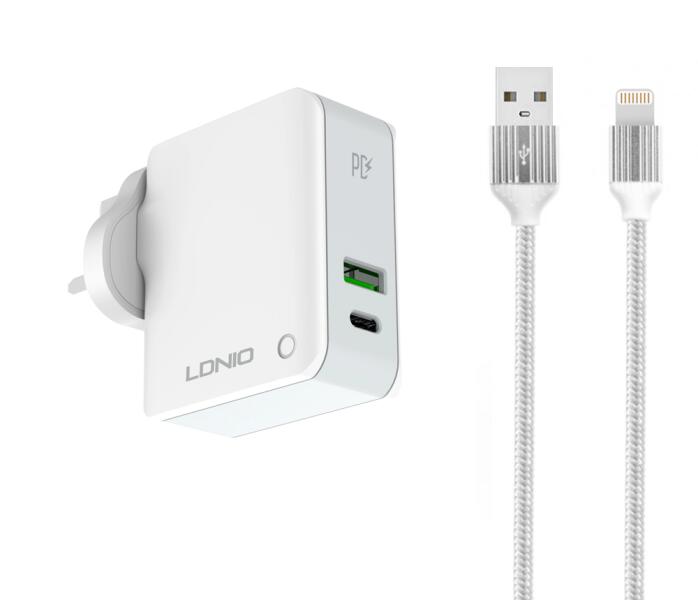Wall charger LDNIO A4403C USB, USB-C 20W + USB-C - Lightning cable LDNIO A4403C USB, USB-C 20W hálózati töltő + USB-C - Villámkábel Az LDNIO A4403C hálózati töltő USB-A és USB-C portokkal van felszerelve, így 2 készüléket tölthet egyszerre. Sőt, 30 W teljesítményt használ, lehetővé téve, hogy gyorsan megújítsa berendezése energiáját, és kitűnik széleskörű kompatibi