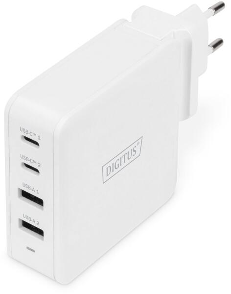 A DIGITUS univerzális töltőadapterrel két USB-C és két USB A eszköz tölthető egyszerre. A Power Delivery 3.0 (PD) kompatibilitás lehetővé teszi a gyors töltést akár 100 W-os sebességgel mindkét USB-C porton és 30 W-on mindkét USB A porton. Kombinált működés esetén 65 W teljesítmény áll rendelkezésre az USB-C eszközöknél, és összesen 30 W az USB A eszközöknél. T