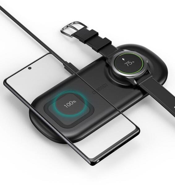 2 az 1-ben többszörös töltés: Ez a 2 az 1-ben hordozható vezeték nélküli töltőállomás lehetővé teszi a Qi kompatibilis telefon és Samsung Watchok egyidejű töltését. Qi tanúsítvánnyal: A Qi CE, FCC, RoHS tanúsítvánnyal többszörös védelmet nyújt, úgymint a túltöltés, túlürítés, túlmelegedés, rövidzárlat ellen. QC 3.0 adapterrel, mely lehetővé teszi a 10