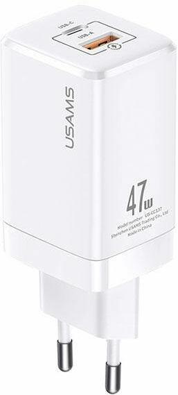 USAMS T41 US-CC137 GaN 47W Super Fast Charge - kompakt töltő óriási lehetőségekkel. Az innovatív GaN félvezető technológia (gallium-nitrid) alkalmazása révén a töltő szilárd, könnyű, nem melegszik fel és nagyon gyorsan tölt. A töltő két gyors USB-C (45W) és egy USB-A (27W) gyorstöltő porttal rendelkezik. Támogatja az összes gyorstöltési szabványt, beleértve a Quick