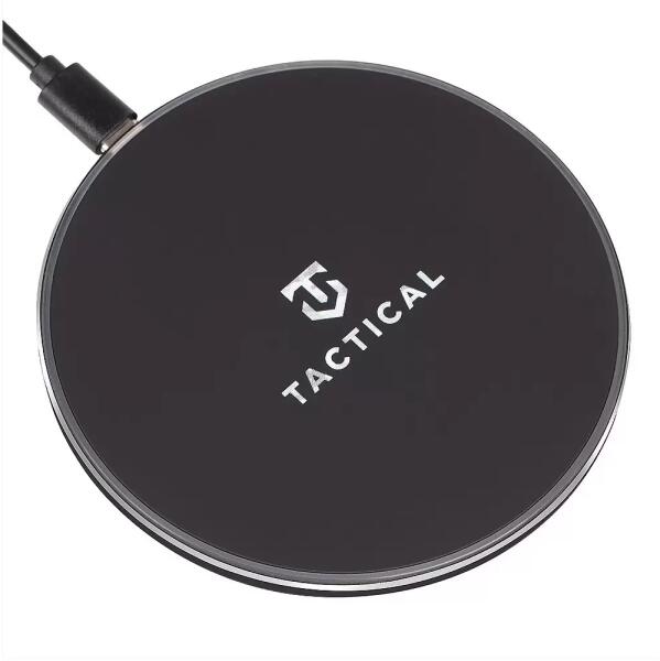 Tactical Fekete Qi vezeték nélküli töltő 15W 1185960 Vezeték nélküli töltő Qi tanúsítvánnyal - gyorstöltés akár 15 W teljesítménnyel - csúszásmentes felület - Kábel hossza: 1 m - Csatlakozó: USB-CI bemenet USB-C: DC 12V/2A, 9V/2A, 5V/2A - Vezeték nélküli kimenet: DC 12V/1.5A, 9V/2A - Méretek: 100mm x 6mm - Idegen tárgy észlelése - Anyaga: ABS, szilikon Hatékonyság: