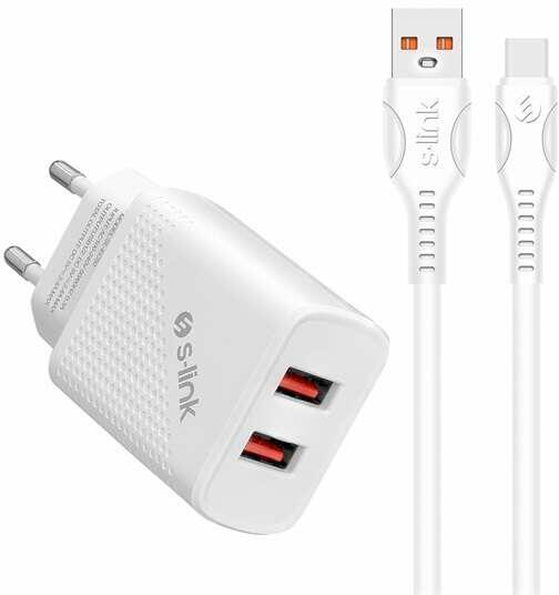 (2db USB, 5V/2.4A, 12W, USB Type-C, 100cm adat+töltõkábel, fehér)BrandS-linkModelSL-EC50TSpecifica tionCharger KitColorWhitePower12wfeature2 USB OutputsFast chargingYescompatibilityType-CInput Voltage100-240VCable Length1M