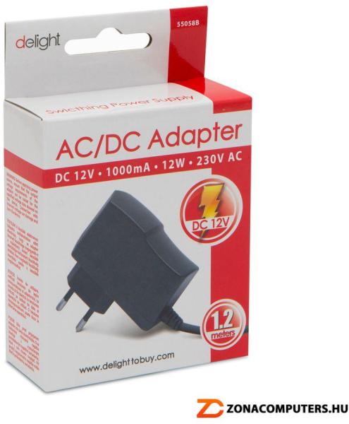 Dugaszolható hálózati tápegység, 12VDC, 1000mA, 12W. - Kábel hossza: 120 cm. - Bemeneti feszültség: 230 VAC. - Frekvencia: 50-60 Hz, - Kimeneti feszültség: 12 VDC. - Kimeneti áramerősség: 1000 mA. - Teljesítmény: 12 W. - Csatlakozó mérete: 5.5 x 2.1 mm. - Működési... Dugaszolható hálózati tápegység, 12VDC, 1000mA, 12W. - Kábel hossza: 120 cm. - Bemeneti feszültség: 230