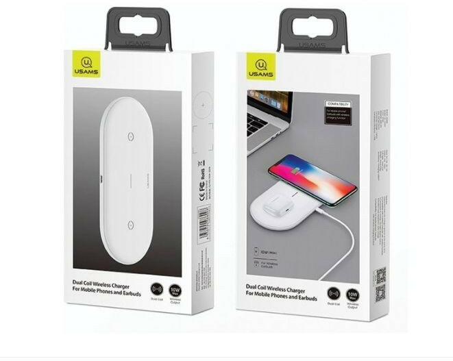 US-CD120 Dual Coil vezeték nélküli töltő mobiltelefonokhoz és fülhallgatókhoz Jellemzők: 1. Elkülönített kettős tekercs, 2 eszköz töltése egyszerre 2. Kompatibilis a vezeték nélküli funkcióval rendelkező mobilokkal / fülhallgatókkal. 3. Kényelmes töltés, LED-es fényjelzés. 4. Kiváló hőelvezetés, biztonságos töltés. Anyag: Anyag: ABS+PC Méret: 190*89*13mm Csatlak