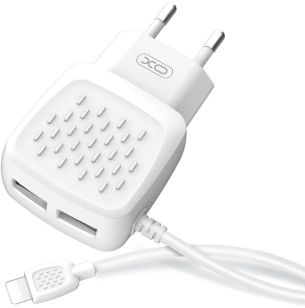 XO L51 2xUSB hálózati töltő és USB/Lightning kábel, gyorstöltő, 2.1A, 1m, fehér