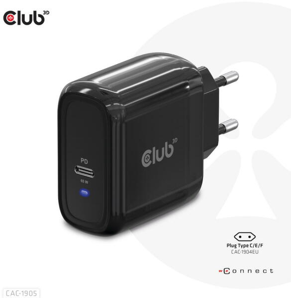Club3D PPS 65W GAN technology, Single port USB Type-C, Power Delivery(PD) 3.0 Support - Hálózati töltõ A Club3D CAC-1905 UTAZÓ töltõ PPS 65 W GAN technológia, egyportos USB Type-C, Power Delivery (PD) 3.0 támogatás. Kompakt méret & Kiváló teljesítmény: A GAN technológiájú lapkakészlet 50%-kal kisebbé teszi ezt a töltõt, mint egy 65 W-os MacBook chager, amely elég kicsi a