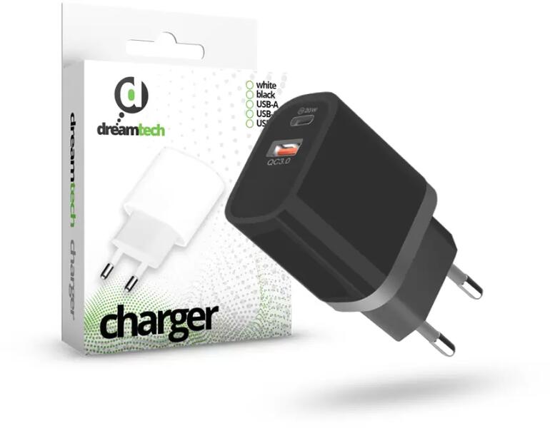 Tulajdonságok: Univerzális két kimenettel Type-C és + USB-A rendelkező hálózati töltőfej. 20Wattos gyorstöltésre alkalmas teljesítménnyel, fekete színben. Akár 50% -ot tölt 30 perc alatt a kompatibilis telefonokon Túlfeszültség elleni védelemmel ellátva Termék megnevezése: Dreamtech 20W (QC3.0) USB-C + USB-A hálózati gyors töltő adapter fekete (122448) Gyártó: Dreamtec