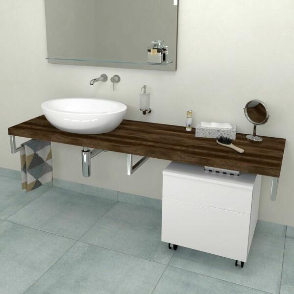 Termékjellemzők tartalmazza a következőket: pultlap, helytakarékos szifon alapanyag: nagy tömörségű 3 rétegű farostlemez felület alapanyaga: laminált lemez (HPL) MoistureProof: tartós és ellenálló anyag mosdókivágások száma: 1 mosdókivágás: középen anyagerősség: 16 mm 1 helytakarékos szifon mellékelve az 50 mm-es vízszigeteléshez fali szerelés szerelési készlette