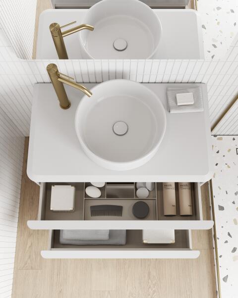 Termékjellemzők tartalmazza a következőket: pultlap, helytakarékos szifon alapanyag: nagy tömörségű 3 rétegű farostlemez felület alapanyaga: laminált lemez (HPL) SmoothSurface: finom és egyenletes a kellemes tapintásért AntiFingerprint: ujjlenyomatok elleni megoldás MoistureProof: tartós és ellenálló anyag mosdókivágások száma: 1 mosdókivágás: bal oldali anyagerősség: