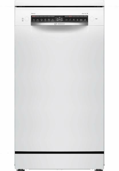 Szabadon álló mosogatógép D energiaosztályú, fehér színben, 10 edény betöltésével és 6 mosogatóprogrammal. A Bosch SPS4EMW61E készülék Wi-Fi-képes készülékcsatlakozással rendelkezik, és a mosogatógép öntisztító szűrőrendszerrel is rendelkezik, háromrétegű hullámos szűrővel.