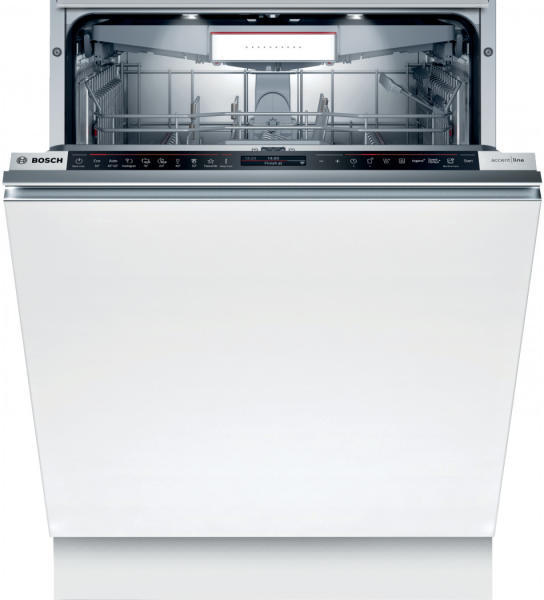 Bosch SBD8TC800E teljesen beépíthető XXL mosogatógép, Accent Line Kiállított modell, még nem volt bekapcsolva Carbon Black Serie 8 modell, EmotionLight Pro belső világítás XXL magas, 3 kosaras, 14 terítékes Silence program: automatikus zajszint csökkentés, nagyobb nyugalom Home Connect Easy Start: ideális programválasztás automatikusan, tökéletes eredménnyel Home Connect: há