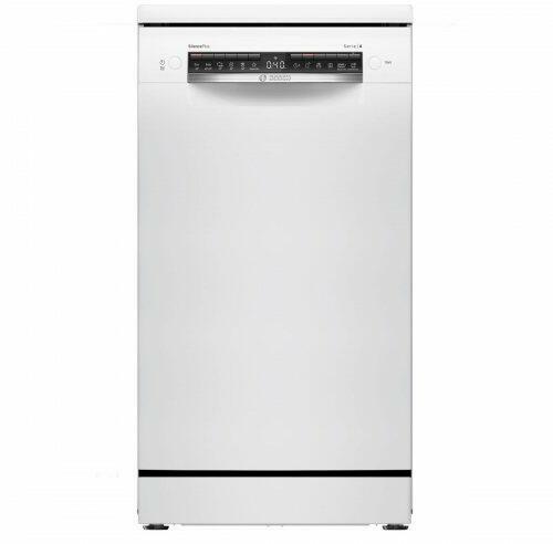 Bosch SPS4EMW24E mosogatógép, 10 szett, 6 program, Home Connect, Silence Plus, C energiaosztály, 45 cm, fehér EfficientDry: javítja a szárítási teljesítményt az ajtó automatikus kinyitásával. Tripla Rackmatic rendszer: a felső polc magassága 5 cm-ig állítható. Silence Plus: különösen csendes mosogatógép 44 dB. Csendes program: a mosogatógép használatának legcsendesebb m