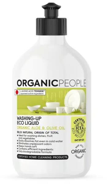 HáztartásOrganic People öko mosogatószer bio aloe verával és olivaolajjal, 500 ml - Bőrpuhító növényi összetevőt tartalmaz - Ideális edények, gyümölcsök és zöldségek tisztítására - Könnyen oldja a zsírt még hideg vízben is- Növényi aminosavakon alapuló japán lágyítószert tartalmaz- Környezetbarát mosogatószer- Tökéletes edények, gyümölcsök és zöldsége