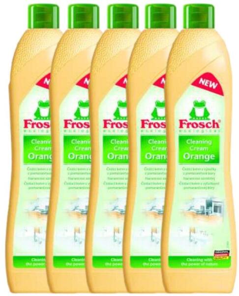 Termék információkHatékonyan távolítja el a zsíros szennyeződéseket, a vízkő- és szappan lerakódásokat minden kerámia-, zománc-, rozsdamentes acél-, és üvegkerámia felületről. Hatásmód:A Frosch narancsos súrolótej hatékonyságát a természetes márvány őrlemény és a narancs kivonat zsíroldó ereje biztosítja. Friss, narancs illattal. Márka:FroschSzabványosított