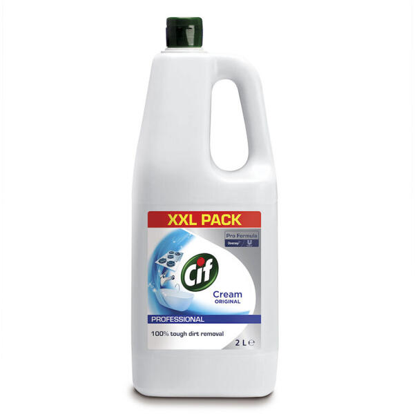A Cif Pro Formula Cream karcmentesen tisztító folyékony súrolószer. Alkalmazható konyhában és szaniter helyiségekben minden kemény és érzékeny felület tisztítására, legyen az akár rozsdamentes acél-, kerámia-, vagy zománcfelület (pl. tűzhely, edények, mosdó). Súrolószer, 2 l, CIF Cream, normál illat Eltávolítja a makacs szennyeződéseket (leégett ételmaradványok,