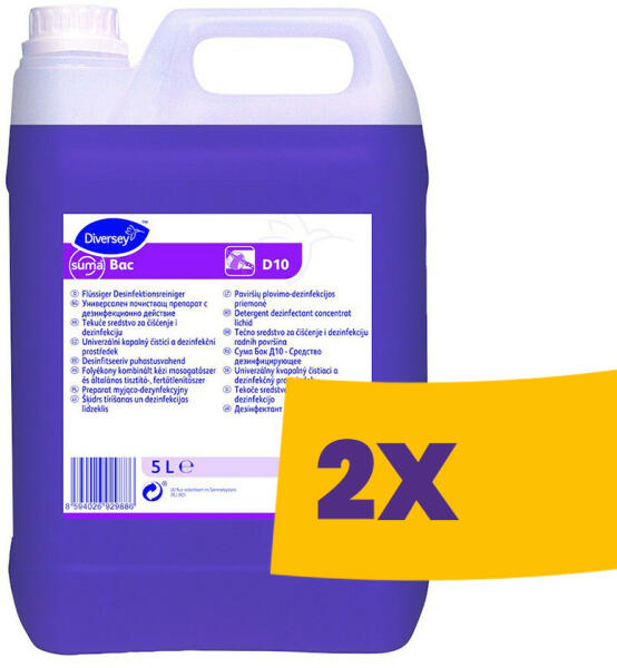 A Suma Bac D10 tisztító-, fertőtlenítő hatású (kombinált) koncentrált vegyszer, mely alkalmas valamennyi élelmiszerrel érintkező felület tisztító fertőtlenítésére. Legfontosabb tulajdonságai: A Suma Bac D10 folyékony fertőtlenítő tisztítószer koncentrátum, amely a felületet egy lépésben tisztítja és fertőtleníti. A termék alkalmas valamennyi élelmiszerrel érint
