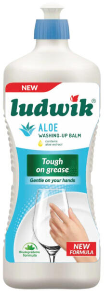Ludwik mosogatószer 900g - Aloe Vera balzsam Elbánik a zsírral Kristálytiszta és szikrázó edények Sűrű állagú Finom Aloe illat pH semleges a bőrre - a kezére gyengéd aloe vera kivonatot tartalmaz
